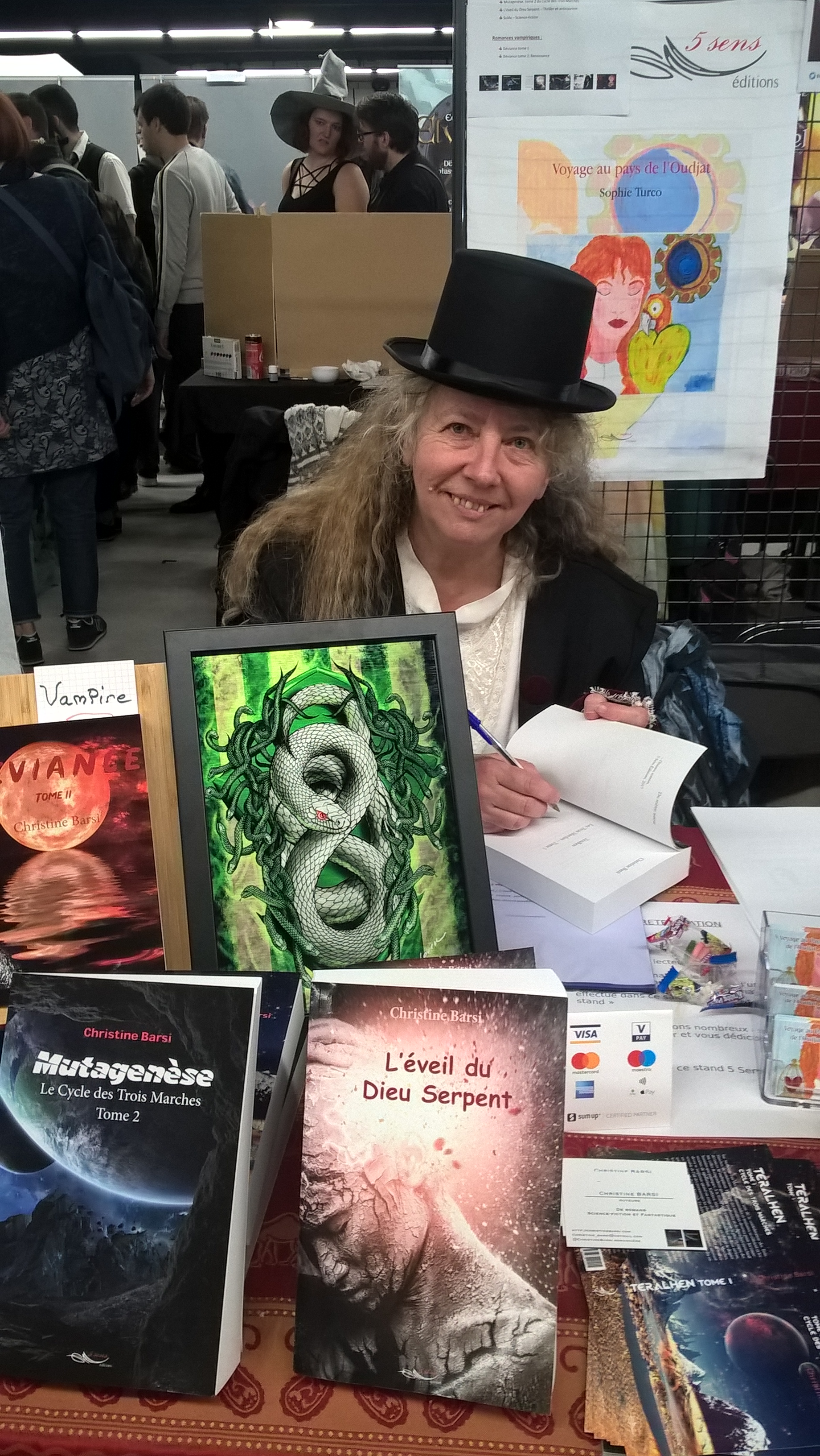 Le salon 2019 s’est achevé après près de trois jours, et comme toujours une expérience très enrichissante. Et pour vous retrouver, lecteurs et amis écrivains et éditeurs, sachez d’ores et déjà que je serais présente au prochain Salon Fantastique sur le stand de mon éditeur 5 Sens Editions pour les 29 et 30 aout 2020. Cette fois, il se déroulera dans les magnifiques jardins du Parc Floral de Vincennes !