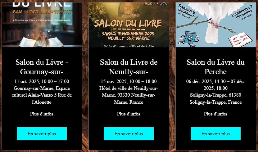 Désormais, rendez-vous sur le Salon du Livre de Soligny-la-Trappe, samedi 6 & dimanche 7 décembre 2025, (Normandie / Orne)
