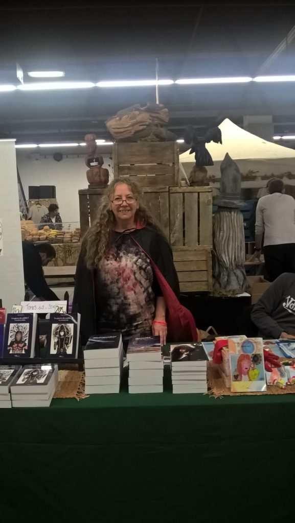 L'auteure Christine Barsi sur le stand du Salon Fantastique, en 2018