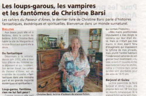 Un article vient de paraître dans le Journal du Perche, dans lequel la romancière annonce la parution de son tout dernier roman de science-fiction / Anticipation « Les Êtres de Langhãem » Lorsque Christine Barsi sort un ouvrage, ses lecteurs les plus fidèles se délectent de chacun de ses mots. Son style et son domaine, le roman d’anticipation, n’ont rien à envier aux auteurs les plus célèbres. Maniant le verbe et les situations, le lecteur ne peut que se perdre dans l’imagination de l’auteure de Bellême (Orne) Une histoire de secret Au cœur du journal Le Matin des Archanges de François Karradec, une exobiologiste du nom de Ketty Brownel mène une enquête audacieuse sur l’existence des humanoïdes stellaires. Son incroyable aventure commence…